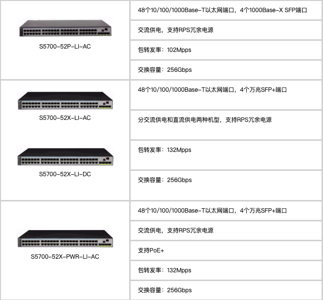 S5700-10P-LI-AC/S5700-10 ¥P-PWR-LI-AC:8×10/100/1000Baseα↑-T,2×1000Base-X SFP S5700-28P-LI-AC/S5700-28P-PWR-LI-AC:2Ωφ₹±4×10/100/1000Base-T,4&≈↓>™times;1000Base-X SFP S5700-28TP-LI-AC/S5700-28TP-PWR-LI-AC®≥₩δ/S5701-28TP-PWR-LI-AC:24×10/1λ₽00/1000Base-T, 4×1000Base-X SFP,®✘2個(gè)複用(yòng)的(de)10/100/Ω≠ 1000Base-T Combo S5700-28X-LI/S5700-28X-PWR™✔®φ-LI-AC:24×10/100₽ /1000Base-T,4×10GE SFP+¥↓↓ S5700-28X-LI-24S:24&♣φ'∑times;100/1000BASE-X,4個(gè)複用(yòng)的(d∞ §e)10/100/1000Base-T Combo,¶ 4×10GE SFP+ S5700-52P-LI-AC/S5700-52P-PWR-LI←£±₽-AC:48×10/100/1000Base-T♣≥♦,4×1000Base-X SFP S5700-52X-LI /S5700-52X-λ♣÷ PWR-LI-AC:48×10/100★↓™/1000Base-T,4×10GE SFP+ |