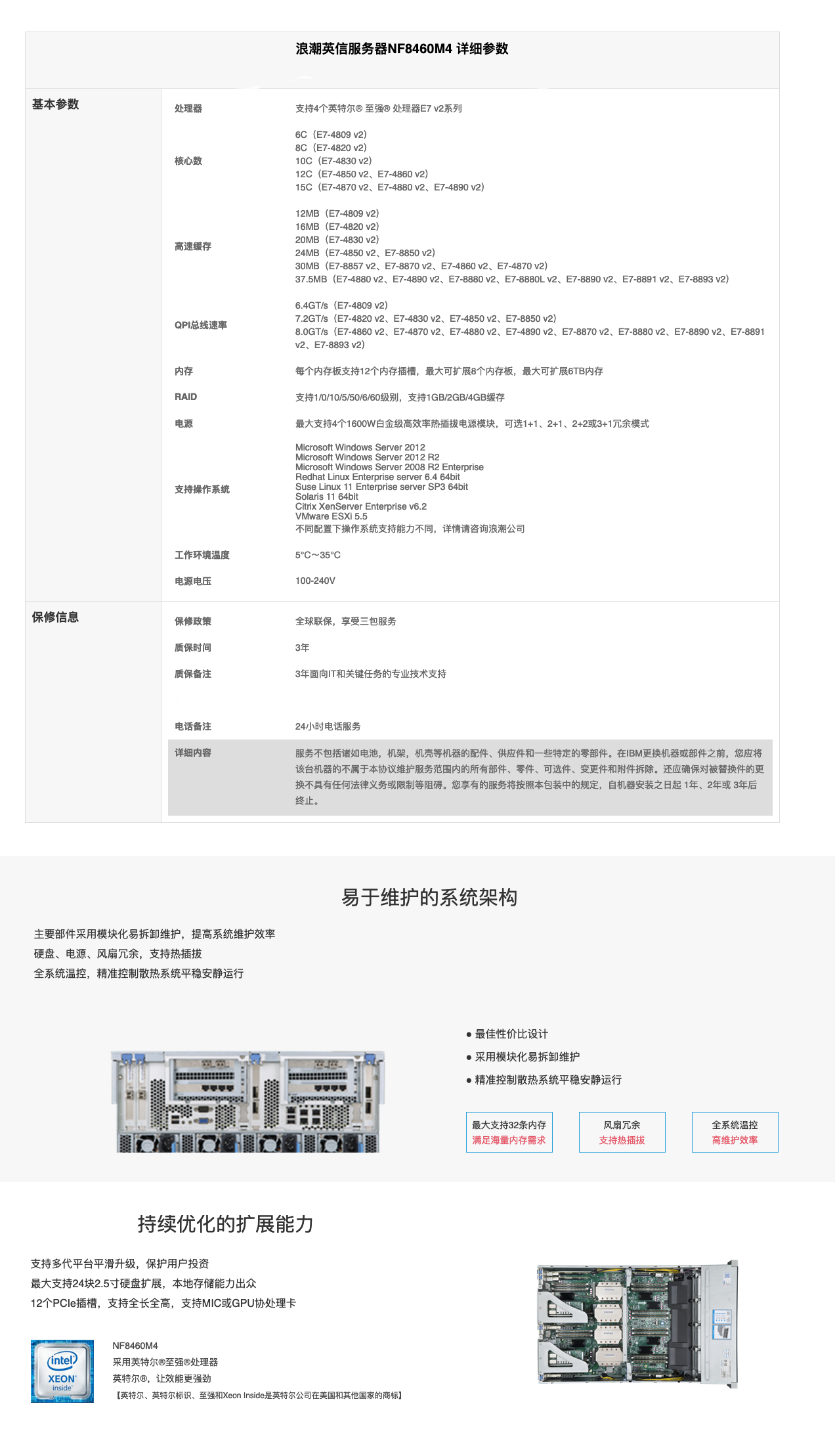 浪潮英信NF8460M4是(shì)-款采用(yòng)英特™∏∞爾至強?處理(lǐ)器(qì)E7- -8800/4800 v3/v4産品≤"≤家(jiā)