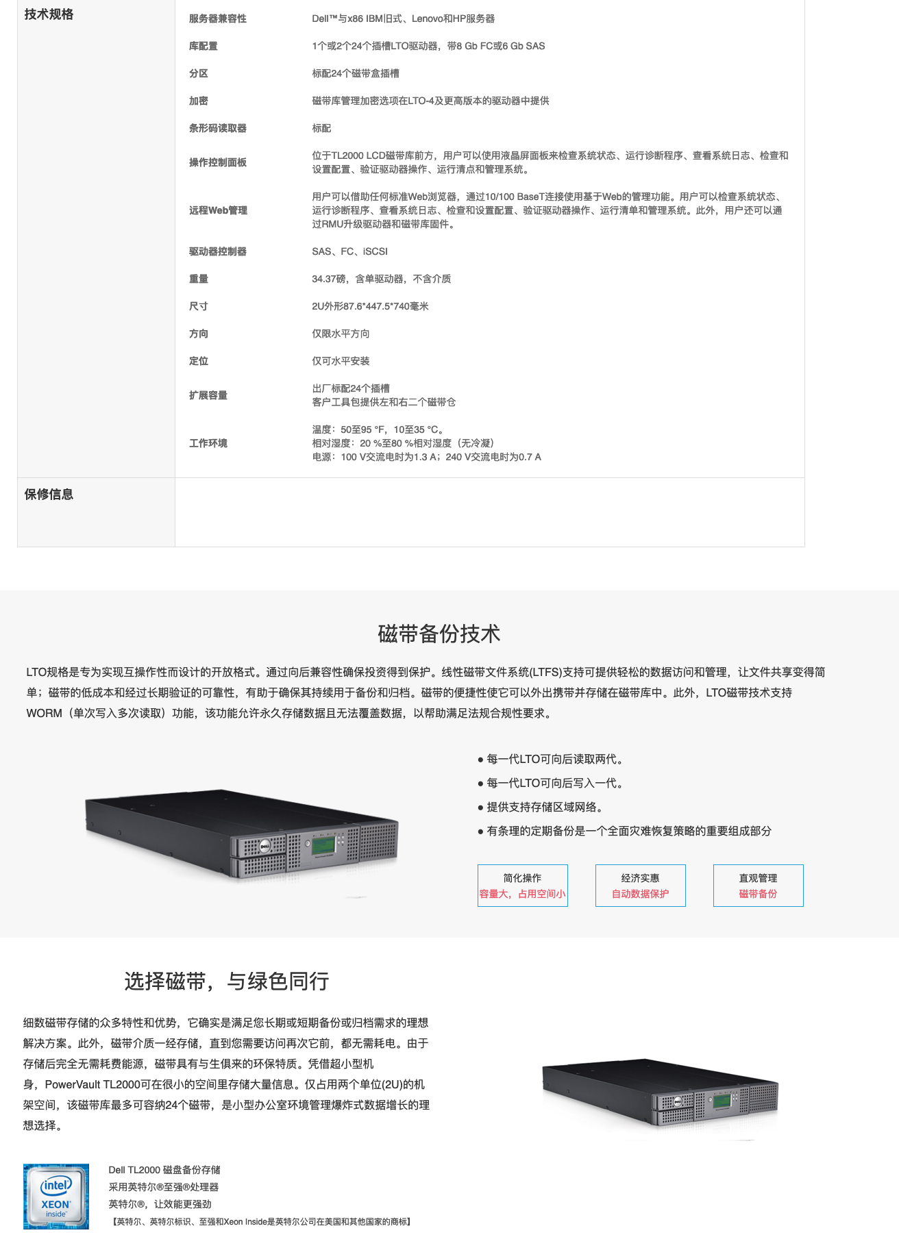 PowerVault TL2000是(shì)一(yī)款簡單、自(zì)£↑♥動、經濟實惠。需要(yào)實現(xiàn)備份流程™☆©π自(zì)動化(huà),減少(shǎo)
