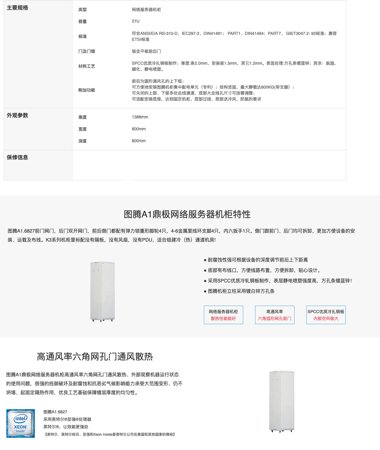 圖騰A1.6827網絡服務器(qì)機(jī)櫃具有(✔↔" yǒu)穩固可(kě)靠、裝配靈活、外(wài)觀γ®•φ高(gāo)雅的(de)特點,鋼材全部