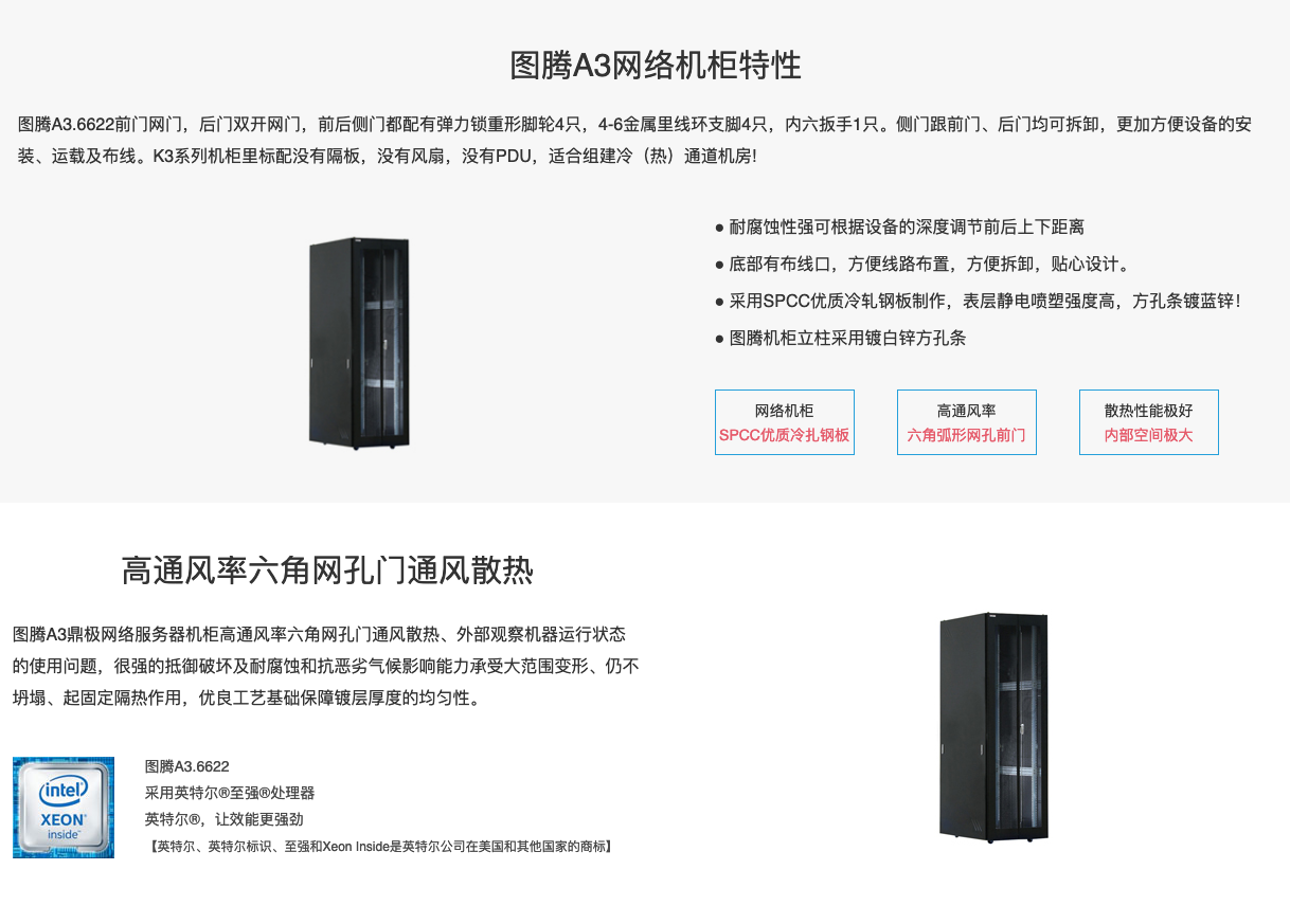 圖騰A3.6622網絡機(jī)櫃具有(yǒu)穩固可(kě)靠、裝配$€σ÷靈活、外(wài)觀高(gāo)雅的(de)特點,鋼材•∑ 全部選用(yòng)優